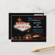 Une carte postale unique pour annoncer la date de votre mariage présente une scène nocturne du panneau de bienvenue de Las Vegas. Tout le texte par défaut peut être entièrement personnalisé avec vos propres formulations, et vous pouvez également modifier les polices, les tailles et les couleurs du texte. Ajoutez ce dont vous avez besoin, supprimez ce dont vous n'avez pas besoin. Personnalisez-la à votre guise.