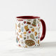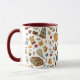 Unique fall Thanksgiving coffee mug hand drawn pattern with an orange sweater, warm scarf, cozy blanket, fall leaves, backpack, pumpkin spice coffee, mulled wine, pumpkin pie, fall candles, warm hat, gourd, autumn flowers, mushrooms, yellow pear, red apple, fall boots, cupcakes and warm socks. It's a unique November fall coffee mug for your cozy home. This cozy autumn coffee mug makes a perfect fall season gift for kids. Cozy October coffee mug with a fall season pattern is a unique coffee mug for her — you, your friend, girlfriend, mom, sister, daughter, aunt, niece, cousin and granddaughter. Get a Thanksgiving coffee mug with a cute one of a kind pattern now!