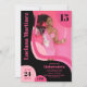 This girly and modern quinceañera birthday party invitation is perfect for the contemporary teen. It features hot pink, medium pink, and black abstract geometric shapes with a bold font that compliments the vibrant colours. It also includes four photos of the guest of honour. It's fun, playful, unique, and cool; the perfect design to impress her guests!