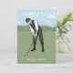 An ideal unique invitation for the golf lover, this hand drawn and coloured vintage style golf scene provides a stylish backdrop for that party invitation which is sure to impress all your golfing friends