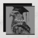 Create unique personalized graduation thank you cards. The front of the card has, "Thanks!" along with a custom eagle grad design. Add your special message on the back. The back also displays your name. Black and white colour hues. Use the template to personalize.