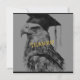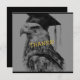 Create unique personalized graduation thank you cards. The front of the card has, "Thanks!" along with a custom eagle grad design. Add your special message on the back. The back also displays your name. Black and gold colour hues. Use the template to personalize.