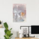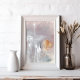 Bring a harmonious unique air to your environment with this minimalist Poster of a modern abstract art of a grey and pink background with orange and black details and white splashes made with mixed media.