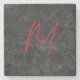 Unique grey red monogram name initial calligraphy stone coaster