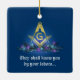 Perhaps the most unique masonic Christmas ornaments around! This cool fraternal art painted by Raphaela Wilson depicts a vintage Santa Claus wearing a masonic belt buckle. These playful white mice silently watching from the xmas tree knew it the whole time of course... Personalize the masonic holiday ornament by adding your own custom text the back side (such as a name, monogram, year, etc.), or leave the calligraphy quote which reads: "They will know you by your labours." Whether for yourself or a fellow lodge brother, these freemason Christmas ornaments make for great masonic gift ideas that will be remembered - especially when the tree and lights go up! Category: merry and unique masonic ornaments; gold square and compass ornaments; and square freemason ornaments. Masonic colour theme: purple, gold, navy blue, red, black and white.