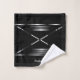 A black and silver geometric Bath towel set with editable name and initial. It's for anyone that loves minimalistic designs. Personalize it with your name and initial.