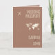Unique and modern passport invitation design by Savanamm, with world map on the front and beach photo inside. Add your photo and QR code.