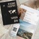 Unique and modern passport invitation design by Savanamm, with world map on the front and beach photo inside. Add your photo and QR code.