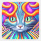 Cool robot colourful kitty cat with mystical green eyes and colourful fur AI generated art stickers.