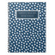 Unique personalized office stationery notebook with a navy blue and white polka dots pattern, custom name template / subject title template. A cute and cool gift for back to school for people that like custom name gifts that are useful.