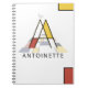 Elegant, funny, artistic monogram. Here is the letter "A". Neoplasticism style, or De Stijl, line and colour artistic decoration, the funny bird sits on the letter. The field of art is located under the letter. The template name "ANTOINETTE" is located under the image. An elegant and unique notebook for anyone. This design is fully customizable. You can change or delete the template name, and you can change the image. If you wish to change fonts, colours, sizes or the whole composition of the design feel free to use the "Edit Design" or "Personalize" (as the case may be) button of the blue colour to further customize it. You will be transferred to the "Design Tool" where you can find fonts, colours, sizes on the right menu; layers, images, geometric elements, backgrounds on the left menu. Just be creative, customize, buy one, enjoy, and be happy!