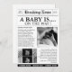 A charming newspaper-style baby shower invite with two customizable photos in classic black and white. Includes a section for event details (date, location, RSVP) and a heartfelt "Waiting for Baby" paragraph to share your joy in a timeless, personal way.
