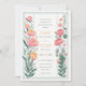 This unique and elegant wedding invitation is perfect for the spring and summer. It features watercolor-painted ranunculus flowers and foliage on the sides of stylish typography and is outlined with a unique border. The colour scheme includes pretty pink, coral orange, white, and forest green. It's beautiful, modern, artsy, and stylish, with a touch of boho flair. It's the perfect design to impress your guests.