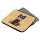 The sleeve is made of nice feeling material and seems very durable. I'm not sure how easy it'll be to clean, but the construction seems sound and the fabric is quick thick. I also like the double zipper. The printing is lovely and appears durable. The white on black contrast is nice, and the design very elegant.