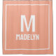 Unique Personalized peach and White Name Monogram Shower Curtain ,elegant script typography template with monogrammed letter ,