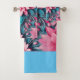 Unique pink blue flower pattern design Bath Towel Set