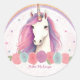 Unique Pink Unicorn, Roses, Rainbow Birthday Classic Round Sticker