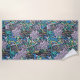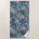Comfy and cozy beach towel with a unique purple and blue floral pattern that has a retro vintage feel to it.