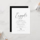 engagement party invite in simple black and white script lettering. The text and grey colours can be edited.