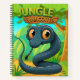 Personalize the back cover of this adorable "Jungle Welcome" notebook! Featuring a unique whimsical baby indigo snake cartoon graphic tropical animal character in a lush forest scene, inviting you into a world of imagination and creativity. This reptile design is perfect for serpent lovers, woodland safari nature wildlife fans, and anyone who enjoys cute, cozy zoo vibes.