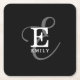 Unique Stylish Name and Monogram Typography Black Square Paper Coaster