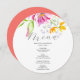 This unique wedding menu card design features unique watercolor florals in shades of pink and orange. Use the template fields to DIY your personalized details and custom menu. The elegant round design is a charming choice for rustic and garden weddings. To see more wedding menu card ideas like this visit www.zazzle.com/dotellabelle
