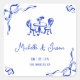 Unique blue whimsical Hand Drawn Contemporary Retro French Fun save the date with a bow frame, a whimsical trendy artwork for your french wedding by Savanamm