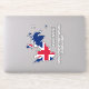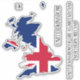 United Kingdom Flag Map Outline Sticker in the outline of the United Kingdom map. The map is infused with the pattern and the colours from the United Kingdom national flag. Small stickers with the country name are also included. United Kingdom map sticker is the perfect sticky gift that can be placed anywhere your heart desire. © 2022 CountriesOfTheWorld