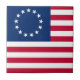This item features the Betsy Ross flag, which was an early design of the United States national flag. It is named after an early upholsterer and flag maker who is said to have first created it. The pattern of the Betsy Ross flag is 13 alternating red-and-white stripes with stars in a field of blue in the upper left corner canton. Its distinguishing feature is thirteen 5-pointed stars arranged in a circle representing the 13 colonies that fought for their independence during The American Revolutionary War. Since the beginning of the 20th century, the flag has been a popular symbol of American patriotism.