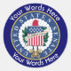 This custom sticker is decorated with the United States Senate shield that can be customized with a choice of words above and below that allow you to personalize it with the name of a person, place, position, etc.