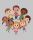 A cute and colourful cartoon illustration of diverse children holding hands in a circle, symbolizing unity, friendship, and inclusivity. The happy expressions on their faces convey joy, togetherness, and teamwork.