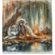 A tranquil moment unfolds by the water's edge as a Native Indian woman, adorned in traditional attire, shares a serene bond with a majestic wolf