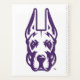 Ce design est un gros plan de la tête de mascotte de l'Université d'Albany Great Dane. L'illustration utilise des contours violets audacieux avec une ombre détaillée en gris pour le visage du Grand Danois, en soulignant ses caractéristiques angulaires. Les yeux sont tranchants, et l'expression véhicule la vigilance et la force. Des accents d'or apparaissent de part et d'autre de la mâchoire du chien, ajoutant une touche de chaleur à l'aspect par ailleurs féroce. Les oreilles sont droites et pointues, ce qui renforce le sentiment de disponibilité et d'autorité du logo. Le design est minimal mais puissant, idéal pour marquer l'identité athlétique d'UAlbany.