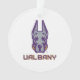 Le logo de la mascotte de l'Université d'Albany Great Dane présente une représentation stylisée de la tête d'un grand Danois. Le chien est illustré de lignes vives et audacieuses en violet et gris, lui donnant une expression féroce et confiante. Les oreilles sont hautes, symbolisant la vigilance et la force. Sous la tête du Grand Danois se trouve le mot "UAlbany" écrit en caractères d'or gras et bloquants, surligné de violet, renforçant l'image de marque de l'université. Cette conception représente les équipes sportives d'UAlbany, mettant en avant le pouvoir, la loyauté et la détermination.