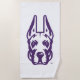 This design is a close-up of the University at Albany Great Dane mascot head. The illustration uses bold purple outlines with detailed shading in grey for the Great Dane's face, highlighting its angular features. The eyes are sharp, and the expression conveys alertness and strength. Accents of gold appear on either side of the dog's jaw, adding a touch of warmth to the otherwise fierce look. The ears are upright and pointed, reinforcing the logo's sense of readiness and authority. The design is minimal yet powerful, ideal for branding UAlbany’s athletic identity.