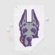 This design is a close-up of the University at Albany Great Dane mascot head. The illustration uses bold purple outlines with detailed shading in grey for the Great Dane's face, highlighting its angular features. The eyes are sharp, and the expression conveys alertness and strength. Accents of gold appear on either side of the dog's jaw, adding a touch of warmth to the otherwise fierce look. The ears are upright and pointed, reinforcing the logo's sense of readiness and authority. The design is minimal yet powerful, ideal for branding UAlbany’s athletic identity.