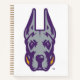 This design is a close-up of the University at Albany Great Dane mascot head. The illustration uses bold purple outlines with detailed shading in grey for the Great Dane's face, highlighting its angular features. The eyes are sharp, and the expression conveys alertness and strength. Accents of gold appear on either side of the dog's jaw, adding a touch of warmth to the otherwise fierce look. The ears are upright and pointed, reinforcing the logo's sense of readiness and authority. The design is minimal yet powerful, ideal for branding UAlbany’s athletic identity.