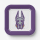 This design is a close-up of the University at Albany Great Dane mascot head. The illustration uses bold purple outlines with detailed shading in grey for the Great Dane's face, highlighting its angular features. The eyes are sharp, and the expression conveys alertness and strength. Accents of gold appear on either side of the dog's jaw, adding a touch of warmth to the otherwise fierce look. The ears are upright and pointed, reinforcing the logo's sense of readiness and authority. The design is minimal yet powerful, ideal for branding UAlbany’s athletic identity.