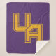 The The University at Albany initials logo features a bold and dynamic "UA" design, rendered in the university's signature purple and outlined with a striking gold border. The angular, block-like letters give the logo a strong and authoritative appearance, perfect for representing school pride and identity. The symmetrical and geometric structure of the letters conveys a modern and professional aesthetic.