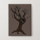 A vector art of a group or unkindness of ravens which are perched on a bald tree.