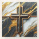 Unveiled Black and White Marble Cross With Gold Glass Coaster