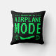 Cozy up with our airplane mode throw pillow! Featuring retro green text on black that adds a fun touch. Get yours now and chill in style. Available in a variety of sizes.