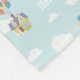 A charming baby blanket design inspired by Disney and Pixar’s Up, featuring a repeating pattern of the iconic floating house lifted by colourful balloons. The house drifts among fluffy white clouds against a soft pastel blue background, creating a dreamy and adventurous atmosphere. Each house illustration is paired with customizable text for the child’s name, making this blanket a personalized keepsake. Perfect for Disney fans, baby showers, or adding a whimsical touch to a nursery.
