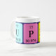 Upbeat spelled out as U P Be At (Uranium Phosphorus Beryllium Astatine) on a mug for the scientist in you.
