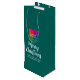 Custom Your Text Merry Christmas Happy New Year Handwritten Script Family Name Add Your Business Company Logo Or Image Photo Here Elegant Modern Template Pine Tree Green & White Promotional Glossy Wine Gift Bag.