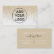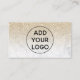 An elegant modern, stylish upload your logo business card with elegant modern simple hand lettering style typography in white on a faux light gold glitter and white marble trendy and elegant background. all text is customizable, add your social media.