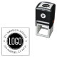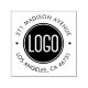 Black and white self-inking stamp featuring your logo, and business address. ----------ADVICE: When changing the logo to your own, be sure to use a solid black and white image for best results. If you do not have a black and white image click the customize button and add a new image, this will allow you to convert your logo to black and white. If you have any difficulties please contact me and I will do my best to help you!