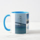 A mug with photos from Michigan's upper peninsula: The Mackinac Bridge, Lake Huron as seen from the Les Cheneaux Islands area, and Tahquamenon Falls. Includes "Upper Peninsula, Michigan" caption inside a UP shape.