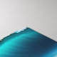 Upright orange surfboard in beach sand with huge ocean wave and surfer quote.