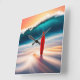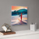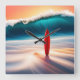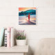 Upright Surfboard in Sand with Wave Square Wall Clock